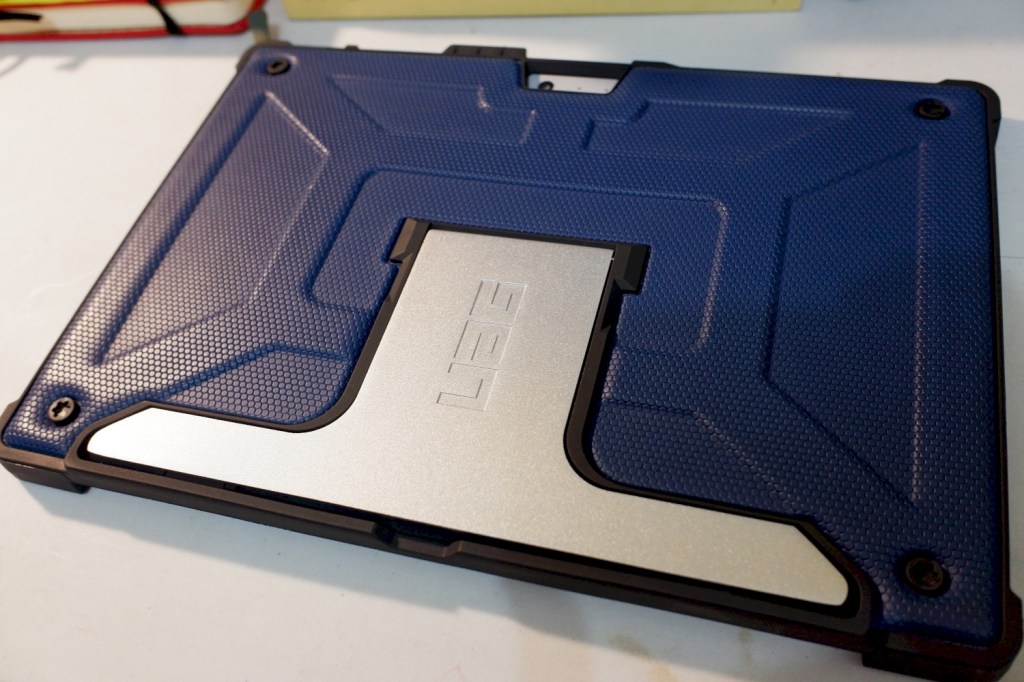 I did crack my laptop screen once during a traveling to Jersey Island. That’s the reason why I bought this protector case. It is a military drop-tested case and has a built-in Surface Pen storage. It might look bulky and intimidating sometimes, but it does the job, protecting my SP4 and suitable with the Surface type cover.